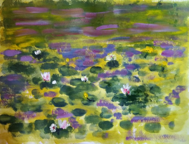 Acrylics, Landscapes, Monet Lilies Share this: Click to share on X (Opens in new window) X Click to share on Facebook (Opens in new window) Facebook Like Loading...