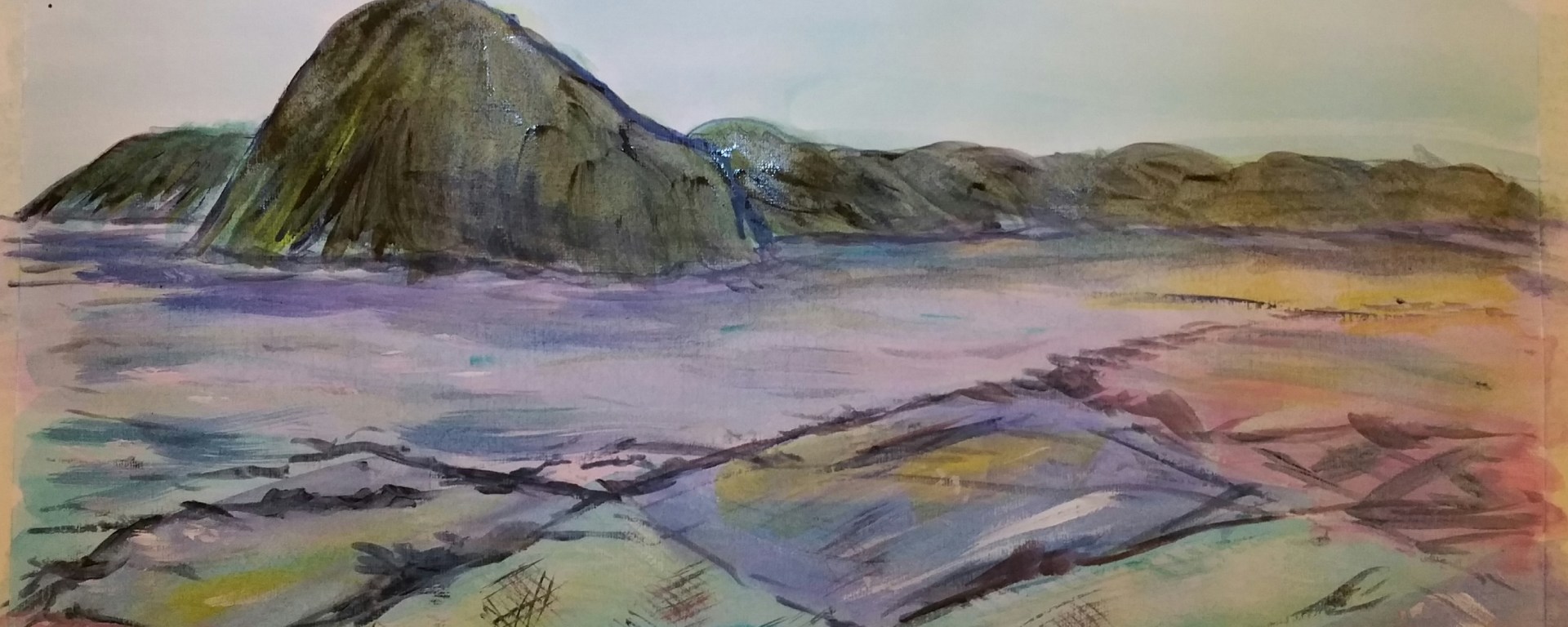 This was a fun painting using pastels in acrylic. It was from a photo once again from my daughter in New Zealand whilst she was on holiday in South Island over Christmas. I tried to capture the criss-cross affect of the rocks in the foreground and the hills and cliffs in the background I painting vertical lines to get some kind of movement.