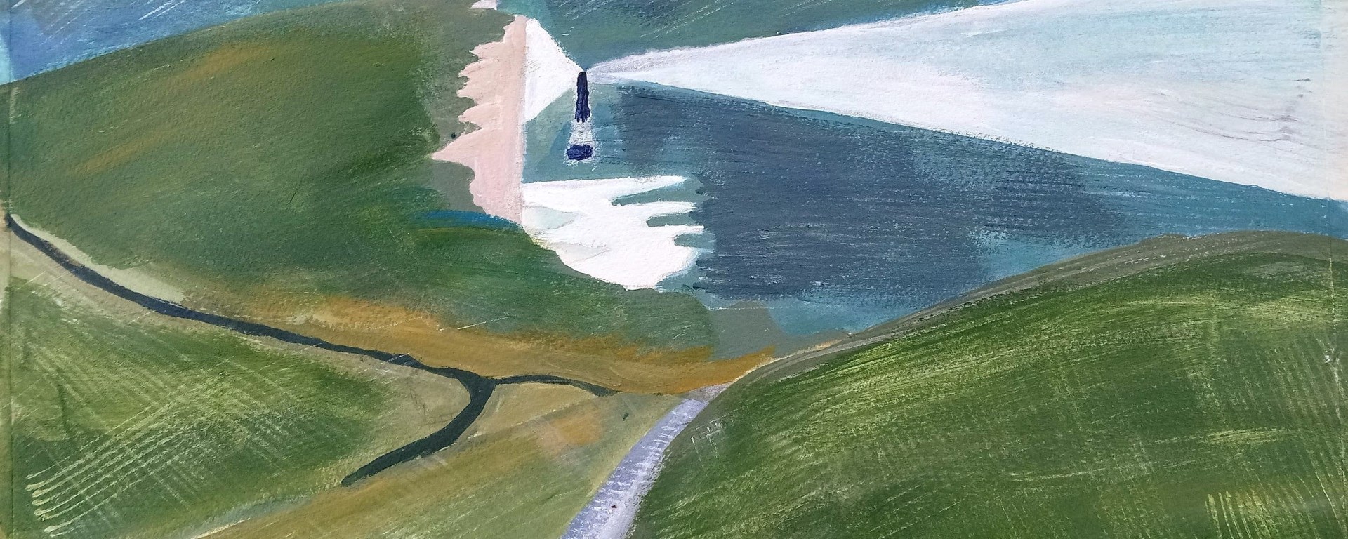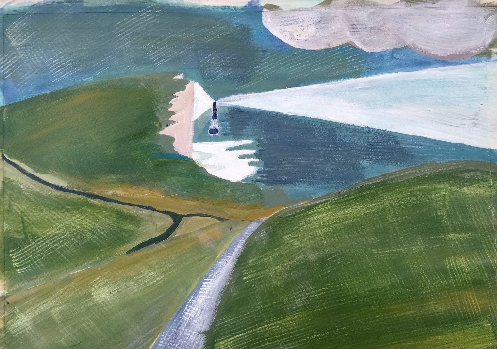 This is a practice piece from an original by Eric Ravilious. I thought would try and see how hard it was to try this style with a view to creating some of my own landscapes. I used acrylics for this and tried the scratching technique to create the look that Ravilious used in his paintings. It wasn’t that easy. Anyway it was my version and attempt to try and copy his style.
