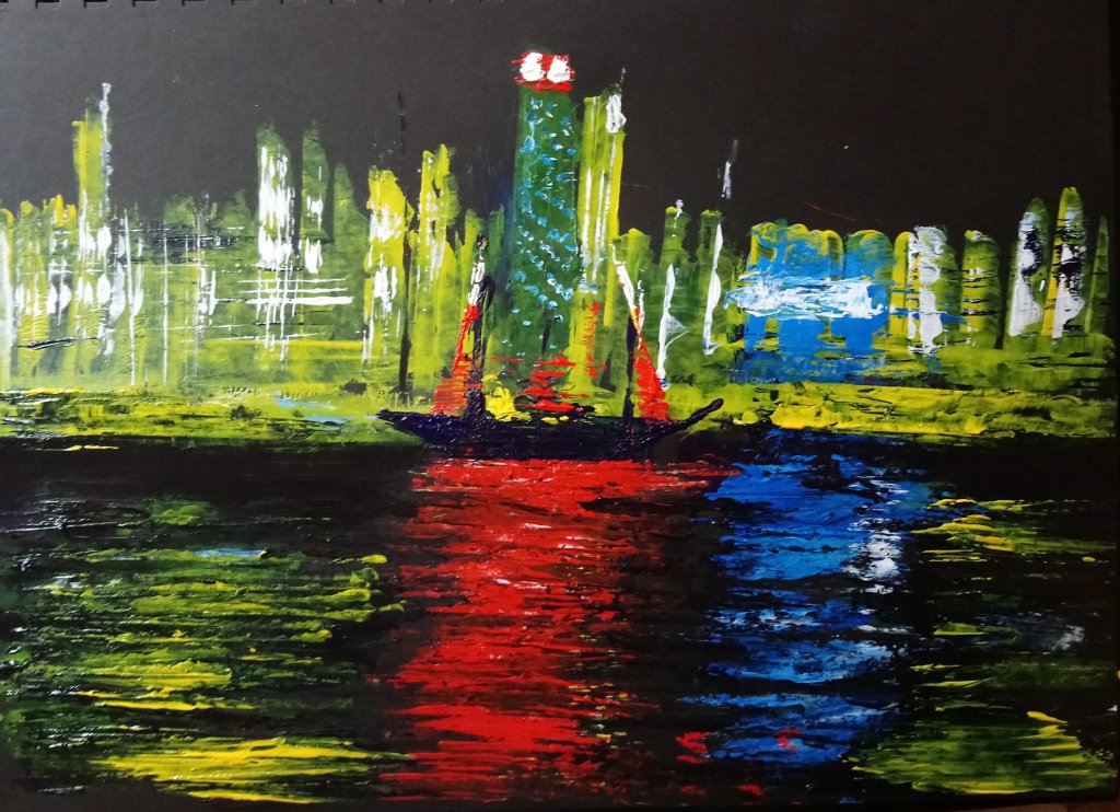 Acrylics, Landscapes Hong Kong at Night Painted in acrylic on black paper using a different technique. I used an old credit card to get the lined effect. Hong Kong at Night Share this: Share on X (Opens in new window) X Share on Facebook (Opens in new window) Facebook Like Loading...