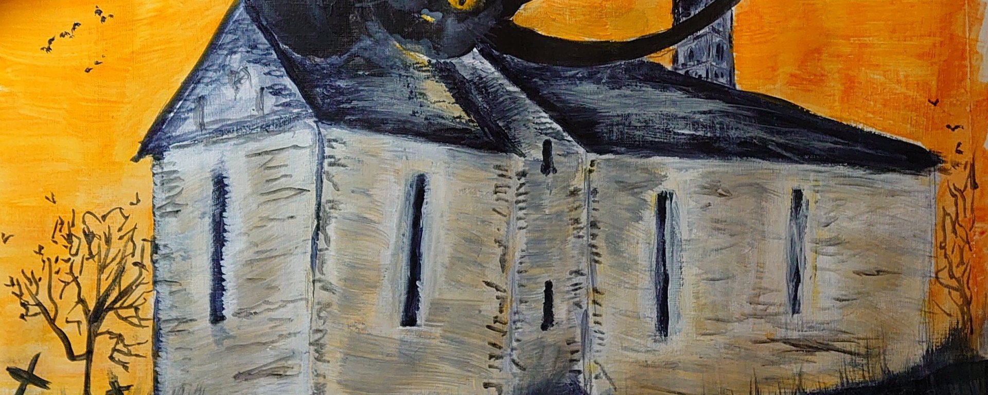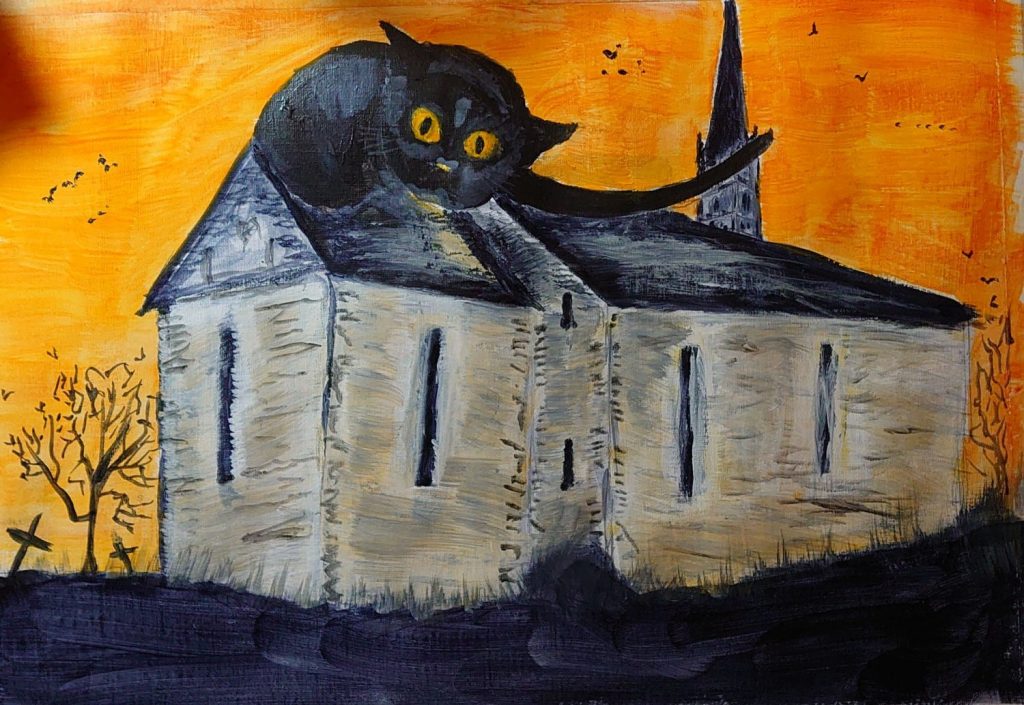 I can’t remember how I came across this picture but I know as soon as I saw it I had to turn it into something of my own. It was crying out for an orange sky and the cat’s eyes had to match it to bring them out more. I added a few birds for good measure just to get a bit of Gothic atmosphere.