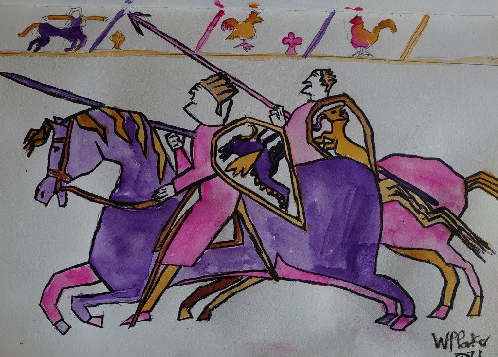 2021, Pen and Wash, Still Life, Watercolour Study on a piece of the Bayeux Tapestry 2 Share this: Click to share on X (Opens in new window) X Click to share on Facebook (Opens in new window) Facebook Like Loading...