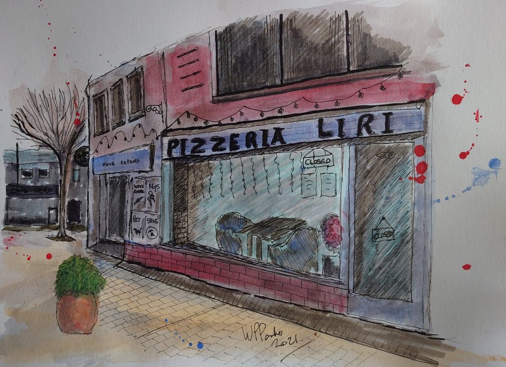 2021, Pen and Wash, Urban Sketching, Watercolour Pizzeria Liri, Chesham Share this: Click to share on X (Opens in new window) X Click to share on Facebook (Opens in new window) Facebook Like Loading...