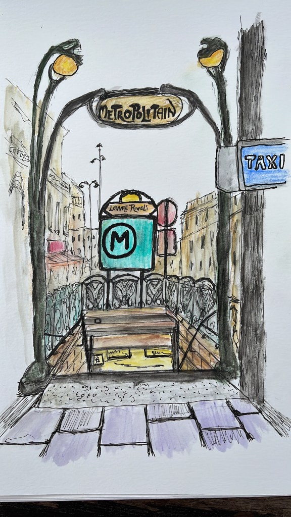 2022, Pen and Wash, Urban Sketching, Watercolour, Watercolour Pencils The Metro, Paris Share this: Click to share on X (Opens in new window) X Click to share on Facebook (Opens in new window) Facebook Like Loading...