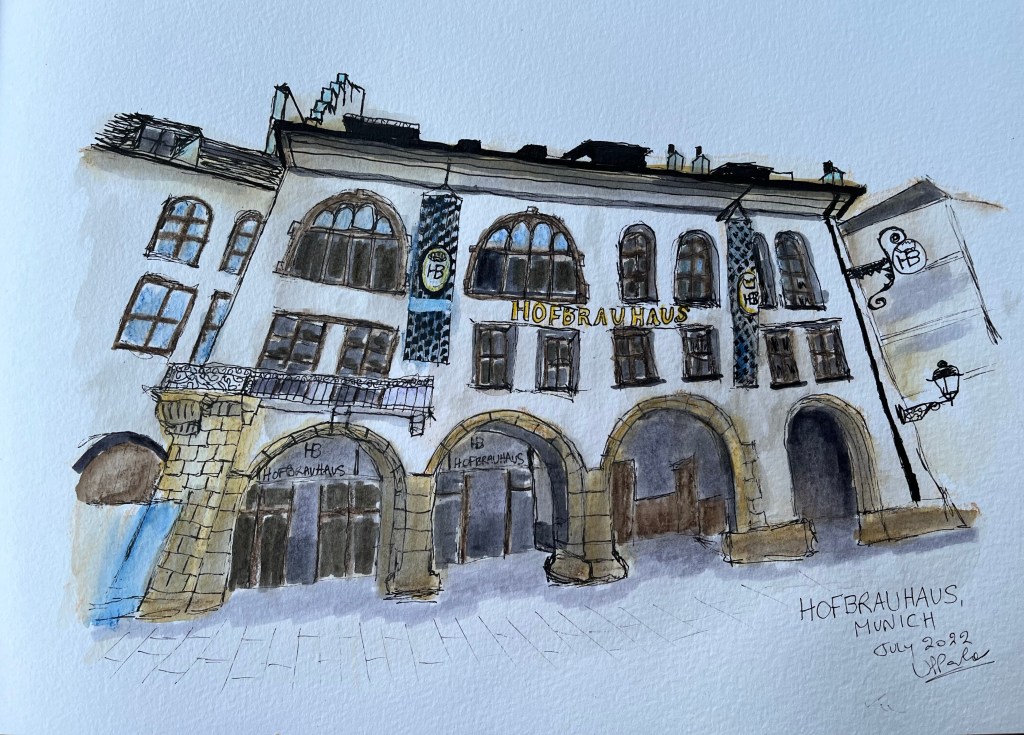 2022, Pen and Wash, Urban Sketching, Watercolour Pencils Hofbrauhaus, Munich Share this: Click to share on X (Opens in new window) X Click to share on Facebook (Opens in new window) Facebook Like Loading...