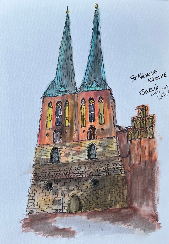 2022, Pen and Wash, Urban Sketching, Watercolour Pencils St Nicholas Church, Berlin Share this: Click to share on X (Opens in new window) X Click to share on Facebook (Opens in new window) Facebook Like Loading...