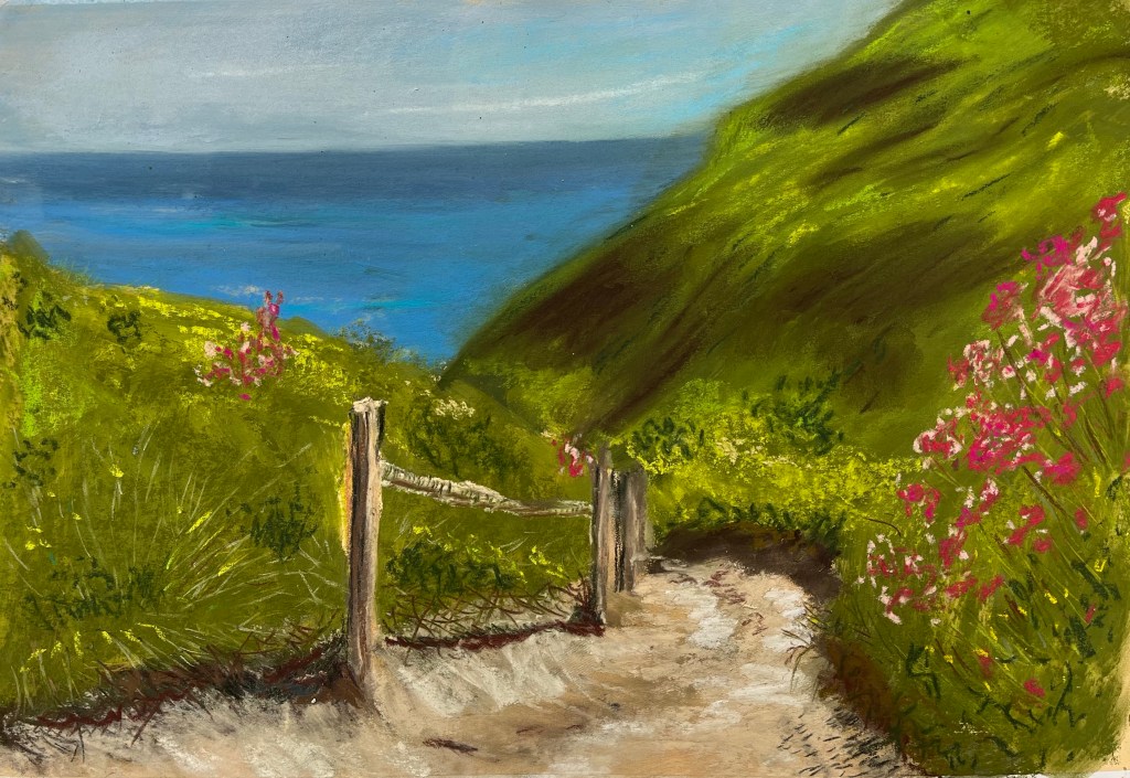 2022, Landscapes, Seascapes, Soft and Oil Pastels Path to Porthcurno Beach Share this: Click to share on X (Opens in new window) X Click to share on Facebook (Opens in new window) Facebook Like Loading...