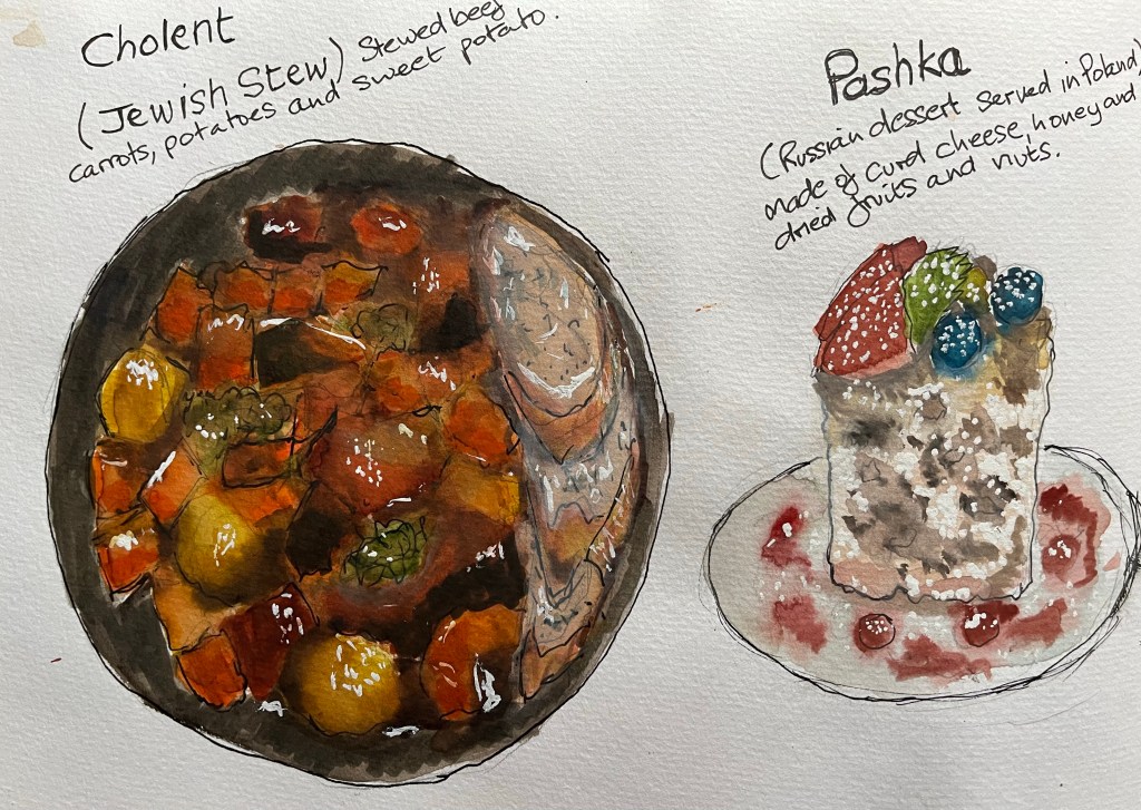 2022, Pen and Wash, Urban Sketching, Watercolour Cholent (Jewish Stew) and Pashka Share this: Click to share on X (Opens in new window) X Click to share on Facebook (Opens in new window) Facebook Like Loading...