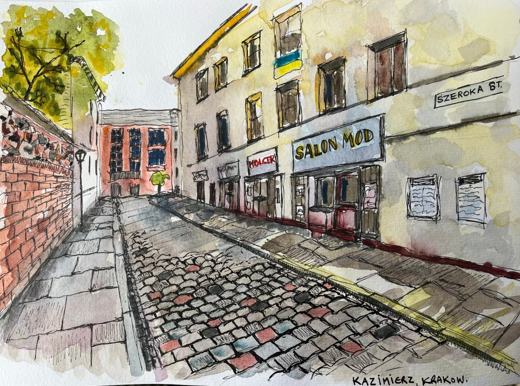 2022, Landscapes, Pen and Wash, Urban Sketching, Watercolour Szeroka Street, Kazimierz Share this: Click to share on X (Opens in new window) X Click to share on Facebook (Opens in new window) Facebook Like Loading...