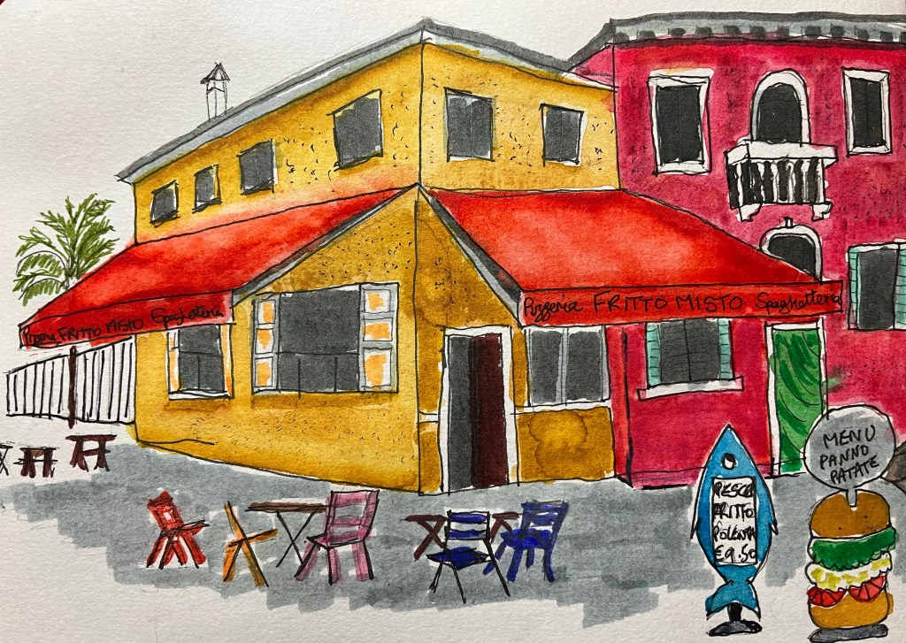 2022, Pen, Pen and Wash, Urban Sketching, Watercolour Fritto Misto Cafe, Burano Share this: Click to share on X (Opens in new window) X Click to share on Facebook (Opens in new window) Facebook Like Loading...
