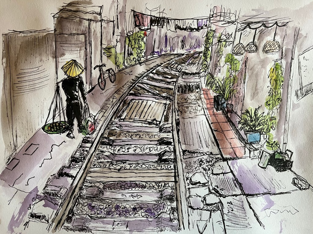 2023, Pen and Wash, Urban Sketching, Watercolour Vietnam Railway Share this: Click to share on X (Opens in new window) X Click to share on Facebook (Opens in new window) Facebook Like Loading...