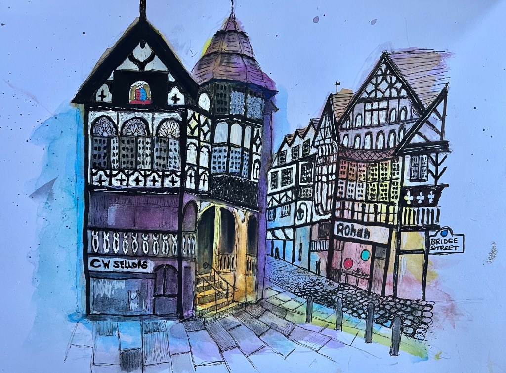 2023, Pen and Wash, Urban Sketching, Watercolour Bridge Street, Chester Share this: Click to share on X (Opens in new window) X Click to share on Facebook (Opens in new window) Facebook Like Loading...