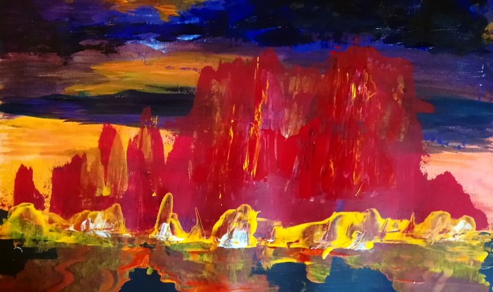 I had absolutely no idea what to do with some paint I had left over so I just allowed my mind to get carried away and eventually it looked like this. An erupting fissure in Iceland maybe or perhaps Hawaii. … Continue reading Fiery Fissures
