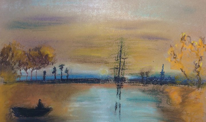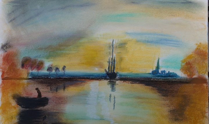 This was the second of two pieces I had to do for this week’s art class online. This was done on mixed media white paper with soft pastels. I slightly changed the boat in the foreground and some of the … Continue reading Chichester Canal 2 (After Turner)